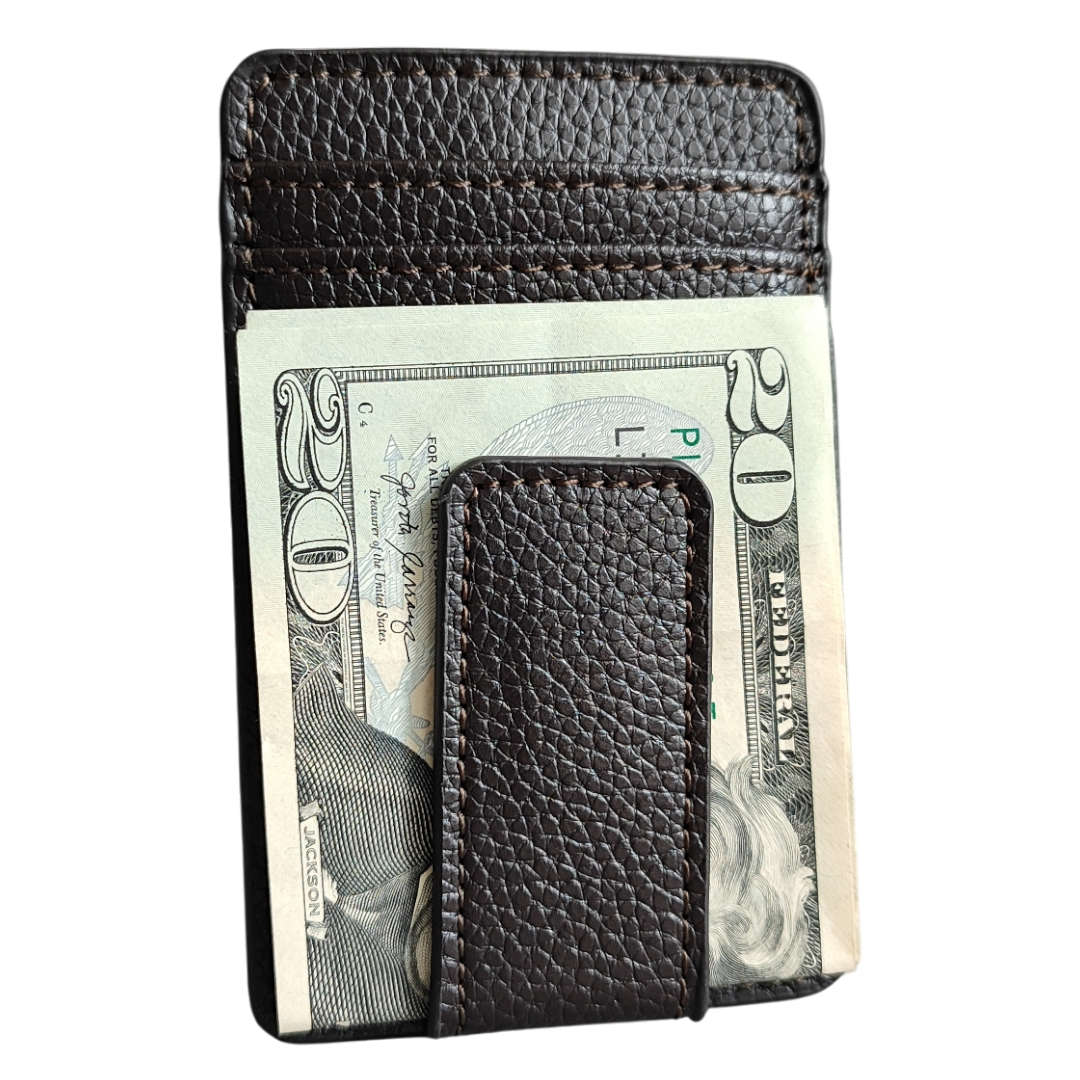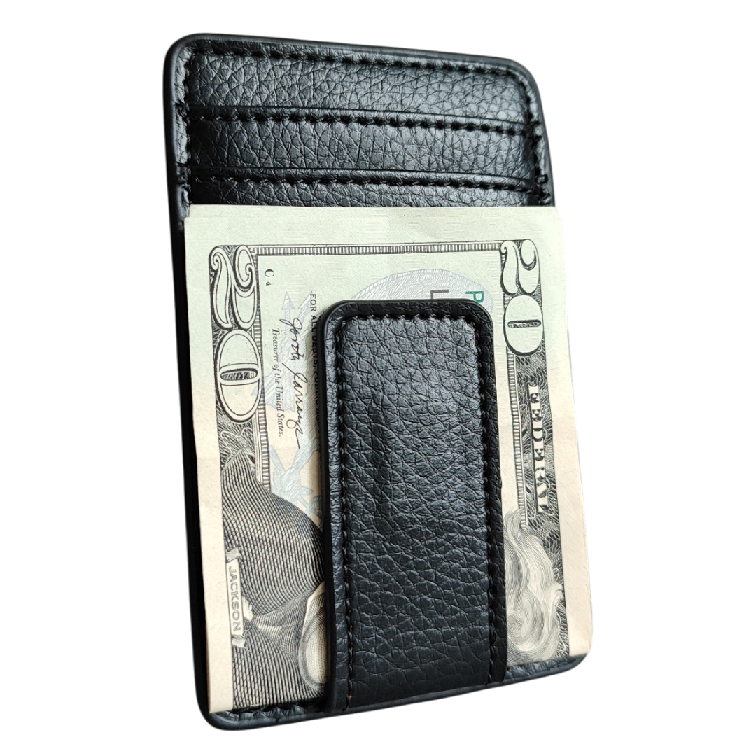 El clip se pliega al medio y cierra por medio de potentes imanes para sostener 20 billetes o más.